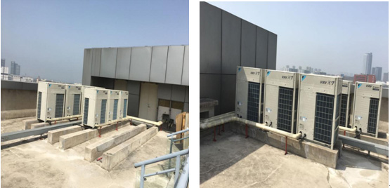 施工內(nèi)容:室內(nèi)機(jī)96臺(tái)共1106.7KW, 室外機(jī)共10套931.8KW。全新風(fēng)處理機(jī)4套。